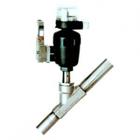 角座阀: 角座阀保持流速能够节省空间.它采用带弹簧安全保护的单作用气动执行机构来操作的导向角座阀.使用时,应该选择常开或常闭. 角座阀广泛应用于短时间频繁启动,具有反应灵敏,动作准确的特点,配合电磁阀使用,用气动控制可准确控制气体、液体流量。可实现准确控温、滴加液体等要求。 角座阀的原理及技术参数: 角座阀保持流速能够节省空间.它采用带弹簧安全保护的单作用气动执行机构来操作的导向角座阀.使用时,应该选择常开或常闭。 产品由不锈钢铸造和聚四氟乙烯.可用于大多数气体,液体.蒸汽和腐蚀性场合.它带有散热器来保护执行机构.确保阀具有较长寿命. 角座阀的原理及技术参数: 单作用和双作用 单作用(气动头通常为一个孔);工作原理;根据弹簧复位达到开启和关闭的作用,分为常开型与常闭型。 双作用(气动头通常为两个孔);工作原理:给气控制其开关。(根据客户要求,还可以选双作用加弹簧复位,控制更精准) 气动角座阀按管道安装类别可分为: 螺纹式(丝扣)连接 快装式连接 法兰式连接 焊接式连接 气动角座阀按执行器种类分为: 塑料执行器角座阀 不锈钢执行器角座阀 按温度可以分为: 常温型(最高200度) 高温型(最高300度) 气动角座阀实际应用参数: 压力范围:0-2.5Mpa(即PN0-PN25) 介质温度:-20 ℃ ~+200 ℃(常温型) -20℃ - +300℃(高温型) 环境温度:-10 ℃ ~+60 ℃ 螺纹式气动角座阀规格:DN10-65 快装式气动角座阀规格:DN15-65 法兰式气动角座阀规格:DN15-125 全不锈钢气动丝扣(内螺纹)角座阀:DN10-65 全不锈钢气动快装式角座阀:DN15-65 全不锈钢气动法兰角座阀:DN15-125 阀体材料:不锈钢 密封材料:聚四氟乙烯 执行机构外壳:聚酰按、不锈钢 气动角座阀在生活中的应用: 控制气体:中性气体,空气 控制液体:自动化工业控制流体、食品级乳工业、生活用水、普通管道流体介质等。
