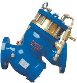 YQ98005过滤活塞式电动浮球阀概述: YQ98005过滤活塞式电动浮球阀主要安装于水池或高架水塔的进水口处,当水位达到设定的高度时,主阀由浮球导阀控制关闭进水口停止供水;当水位下降后,主阀由浮球导阀控制打开进水口向水池注水,实现自动补水。液位控制精确,不受水压干扰;隔膜式遥控浮球阀可随水池的高度及使用空间任意位置安装、维护、调试、检查方便,使用寿命长。性能可靠、强度高、动作平稳。关闭严密可靠,阀体采用流线型设计,流体阻力小,流量大;使用维护方便,主阀安装在水池外面,调试检验方便,维修简单。