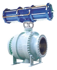 气动固定球阀特点及用途 Q647型气动固定式球阀是新一代高性能球阀,适用于长输管线和一般工业管线,其强度、安全性、耐恶劣环境性等在设计时进行了特殊考虑,适用于各种腐蚀性和非腐蚀性介质。 它与浮动球阀相比,工作时,阀前流体压力在球体上产生的作用力全部传递给轴承,不会使球体向阀座移动,因而阀座变形小,密封性能稳定、使用寿命长,适用于高压、大口径场合。 先进的弹簧与阀座组件,具有自紧特性,实现上游密封。每阀有两个阀座,每个方向都能密封因而安装没有流向限制,是双向。本阀有二块式和三块式两种阀体结构,中法兰用螺栓连接,密封采用增强聚四氟乙烯镶入不锈钢圈内,钢圈后部设有弹簧保证阀座紧贴球体,保证密封。 上下阀杆均设有PTFE轴承,减少磨擦,操作省力,小轴底部没有调整片,保证球与密封圈的接触位置。采用全通径的结构使阀门流量孔么与管线内径一致,以便管线清扫。
