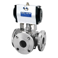 气动三通球阀可分为L型和T型。L型三通球阀用于介质流向的切换,能使相互垂直的两个通道连通(如流向图L型)。三通球阀一般采用两阀座结构,亦可根据用户要求采用四阀座结构。四阀座密封三通球阀具有造型美观、结构紧凑合理,它不仅可实现介质流向的切换,也可使三个通道相互连通,同时也可关闭任一通道,使另外两个通道连通,灵活控制管路中介质的合流或分流。(如流向图T型)