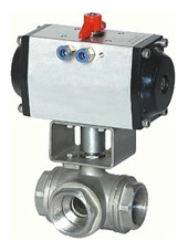 Q614/615F气动内螺纹三通球阀详细介绍: 1.气动执行器表面经阳极氧化处理,齿轮齿条结构,有开关两个位置+/-5°行程调节 2.NAMUR标准气源接口,可与电磁阀直接连接 3.三通球阀任一通口均可用作入口而无泄露,并可根据工况需要制成L型或T型通道,使安装更加方便 4.三通球阀分为L型和T型,L型适用于介质的流向切换,能使相互垂直的两个通道联通,T型适用于介质的分流,合流或流向切换。 5.双层阀杆填料符合德国TüV TA-LUFT的阀杆泄露测试要求