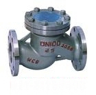 用途和性能 本阀门用于工业管道上作阻止介质逆流的装置。 . 原理和结构说明 本阀门在使用过程中,介质按图示箭头方向流动。 1.当介质按规定方向流动时,阀瓣受介质力的作用,被开启;介质逆流时,因阀瓣自重和阀瓣受介质反向力的作用,使阀瓣与阀座的密封面密合而关闭,达到阻止介质逆流的目的。 2,阀体及阀瓣的密封面采用不锈钢堆焊。 3,本阀门的结构长度按GB12221-1989的规定,法兰连接尺寸按JB/T79-1994的规定。