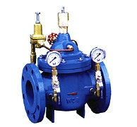 400X流量控制阀结构特点和用途: 400X流量控制阀由主阀、流量调节阀、针阀、导阀、球阀、微形过滤器和压力表组成水力控制接管系统。利用水力自动操作,控制和调节主阀开度,使通过主阀的流量保持不变。 本产品利用水力自力控制,不需要其它装置和能源,保养简便,流量控制稳定。 本系列阀门产品广泛用于高层建筑、生活区等供水管网系统及城市供水工程。