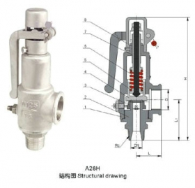 产品型号: A28H 产品特点:A28H带手柄弹簧全启式安全阀型适用于工作温度≤200℃的水、空气、蒸气等介质的设备或管路上。A27Y适用于工作温度≤200℃有腐蚀性介质的设备或管路上,作为超压保护装置。