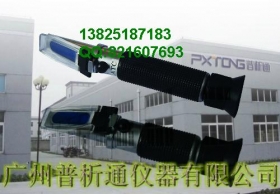 广州市普析通仪器手持式折射仪是为测量溶液的浓度或水溶性混合物的比例而设计的精密的光学仪器。简单易用,且价格优惠。它是为测量多种溶液浓度而专门设计的,如:水果汁、饮料、蜂蜜 、盐水、海水、清洗液、电池液、防冻液和工业溶液等。只要滴几滴液体在棱镜上,然后向着光观察,就可以读出溶液的浓度。如果标有T(ATC)的是增加了温度自动补偿系统。
