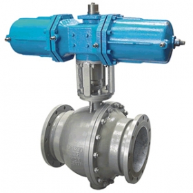 气动固定球阀特点及用途 Q647型气动固定式球阀是新一代高性能球阀,适用于长输管线和一般工业管线,其强度、安全性、耐恶劣环境性等在设计时进行了特殊考虑,适用于各种腐蚀性和非腐蚀性介质。 它与浮动球阀相比,工作时,阀前流体压力在球体上产生的作用力全部传递给轴承,不会使球体向阀座移动,因而阀座变形小,密封性能稳定、使用寿命长,适用于高压、大口径场合。 先进的弹簧与阀座组件,具有自紧特性,实现上游密封。每阀有两个阀座,每个方向都能密封因而安装没有流向限制,是双向。本阀有二块式和三块式两种阀体结构,中法兰用螺栓连接,密封采用增强聚四氟乙烯镶入不锈钢圈内,钢圈后部设有弹簧保证阀座紧贴球体,保证密封。 上下阀杆均设有PTFE轴承,减少磨擦,操作省力,小轴底部没有调整片,保证球与密封圈的接触位置。采用全通径的结构使阀门流量孔么与管线内径一致,以便管线清扫。