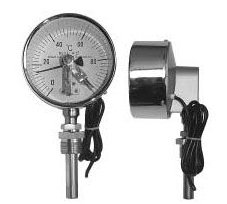 电接点双金属温度计应用于生产现场对温度需自动控制和报警。直接测量各种生产过程中-80~500℃范围内体、蒸汽和气体介质温度。
