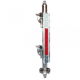 磁翻板液位计主体外的翻板箱受主体内浮子(具有定向磁性源,按不同介质和压力针对研制)的作用促其翻板翻动并显示红白颜色,并随浮子的移动指示不同的液面高度。在指示器左侧配有醒目的刻度标尺,从而使液位的指示显得更加清晰。