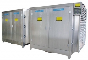 二、利用高能高臭氧UV紫外线光束分解空气中的氧分子产生游离氧,即活性氧,因游离氧所携正负电子不平衡所以需与氧分子结合,进而生成臭氧;UV+O2→O-+O*(活性氧)O+O2→O3(臭氧),臭氧与呈游离状态污染物质原子聚合,生成新的、无害或低害物质,如CO2、H2O等,同时,臭氧对有机物具有极强的氧化作用,对恶臭气体及其它刺激性异味有立竿见影的清除效果。