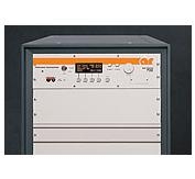 The Model 1000T8G18B is a self contained, forced air-cooled, broadband traveling wave tube (TWT) microwave amplifier designed for applications where instantaneous bandwidth, high gain and high power output are required. Reliable TWT subsystems provide a conservative 1000 watts minimum at the amplifier output connector over most of the frequency range. Stated power specifications are at fundamental frequency. The amplifier‘‘s front panel digital display shows forward and reflected output plus extensive system status information accessed through a series of menus via soft keys. Status indicators include power on, warm-up, standby, operate, faults, excess reflected power warning and remote. Standard features include a built-in IEEE-488 (GPIB) interface, 0 dBm input, VSWR protection, gain control, RF output sample ports, auto sleep, plus monitoring of TWT helix current, cathode voltage, collector voltage, heater current, heater voltage, baseplate temperature and cabinet temperature. Modular design of the power supply and RF components allow for easy access and repair. Use of a switching mode power supply results in significant weight reduction. The rated power is developed by efficiently power combining the outputs from four 300 watts (nominal) microwave tubes that are factory matched in gain and phase to offer moderate harmonic levels without added filters. Amplifier includes wheels, leveling feet and hooks for lifting. The Model 1000T8G18B provides readily available RF power for a variety of applications in Test and Measurement, (including EMC RF susceptibility testing), Industrial and University Research and Development, and Service applications. Unit is CE marked to comply with EMC European Directive 89/336/EEC for operation inside a shielded room. Refer to the Model Configuration Chart for alternative configurations and special features.