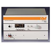 The Model 300TR7z5G18 is a self contained, forced air cooled, broadband traveling wave tube (TWT) microwave amplifier designed for applications where instantaneous bandwidth and high gain are required. A reliable TWT provides a conservative 300 watts minimum at the amplifier output flange over most of the frequency range. Stated power specifications are at the fundamental frequency. The amplifier‘‘s front panel digital display shows forward and reflected output plus extensive system status information accessed through a series of menus via soft keys. Status indicators include power on, warm-up, standby, operate, faults, excess reflected power warning and remote. Standard features include a built-in IEEE-488 (GPIB) interface, 0 dBm input, VSWR protection, gain control, RF output sample port, auto sleep, plus monitoring of TWT helix current, cathode voltage, collector voltage, heater current, heater voltage, baseplate temperature and cabinet temperature. Modular design of the power supply and RF components allow for easy access and repair. Use of a switching mode power supply results in significant weight reduction. This unit is designed for 19 inch rack mounting, offers four side mounted carry handles, plus non-slip feet for bench top use. Model 300TR7z5G18 provides readily available RF power for a variety of applications in Test and Measurement, (including EMC RF susceptibility testing), Industrial and University Research and Development, and Service applications. Contact AR RF/Microwave Instrumentation for information on other models with alternative packaging and features.