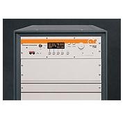 The Model 1500T2G8A is a self contained, forced air cooled, broadband traveling wave tube (TWT) microwave amplifier designed for applications where instantaneous bandwidth, high gain and high power output are required. Reliable TWT subsystems provide a conservative 1500 watts minimum at the amplifier output connector. Stated power specifications are at fundamental frequency. The amplifier‘‘s front panel digital display shows forward and reflected output plus extensive system status information accessed through a series of menus via soft keys. Status indicators include power on, warm-up, standby, operate, faults, excess reflected power warning and remote. Standard features include a built-in IEEE-488 (GPIB) interface, 0dBm input, VSWR protection, gain control, RF output sample port, plus monitoring of TWT helix current, cathode voltage, collector voltage, heater current, heater voltage, baseplate temperature and cabinet temperature. Modular design of the power supply and RF components allow for easy access and repair. Use of a switching mode power supply results in significant weight reduction. The rated power is developed by efficiently power combining the outputs from four 500 watts (nominal) microwave amplifiers that are factory matched in gain and phase The Model 1500T2G8 provides readily available RF power for a variety of applications in Test and Measurement, (including EMC RF susceptibility testing), Industrial and University Research and Development, and Service applications. Refer to the Model Configuration chart for alternative configurations in specification sheet.