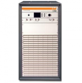 The Model 2500A225 is a self-contained, broadband, completely solid-state amplifier designed for applications where instantaneous bandwidth and high gain are required. The amplifier is air cooled using internal self-contained liquid cooling for high performance and reliability. Push-pull LDMOS circuitry is utilized in all high power stages in the interest of low distortion and improved stability. The Model 2500A225 is equipped with a Digital Control Panel (DCP), providing local and remote control of the amplifier. The DCP uses a 3 · inch diagonal graphic display, menu assigned softkeys, a single rotary knob, and four dedicated switches to offer extensive control and status reporting. The display provides operational presentation of Forward Power and Reflected Power plus control status and reports of internal amplifier status. All amplifier control functions and status indications are available remotely in GPIB/IEEE-488 format, RS-232 hard wire and fiber optic, and USB and Ethernet. The buss interface connectors are located on the back panel and positive control of local or remote operation is assured by a keylock on the front panel of the amplifier. High efficiency universal input, power factor corrected switching power supplies provide DC to all internal sub-assemblies. Housed in a stylish, contemporary enclosure, the Model 2500A225 provides readily available RF power for typical applications such as RF susceptibility testing, antenna and component testing, watt meter calibration, particle accelerators, plasma generation, communications and use as a driver for higher power amplifiers.
