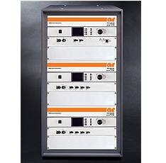 The Model 1500A3 is a self-contained, air-cooled, broadband, solid-state amplifier designed for applications where instantaneous bandwidth and high gain are required. The Model 1500A3, when used with an RF sweep generator, will provide a minimum of 1500 watts of swept power. A digital control panel provides both local and remote control of the amplifier. The display provides operational presentation of forward power and reflected power, plus control status and reports of internal amplifier status. Special features include a gain control, RF output level protection, and an optional remote transformer with selectable taps for matching to different load impedances. All amplifier control functions and status indications are available remotely in IEEE-488, RS-232 and USB. The buss interface connectors are located on the back panel and positive control of local or remote operation is assured by a keylock on the front panel of the amplifier. High efficiency universal input, power-factor-corrected switching power supplies provide DC to all internal assemblies. Typical applications include RF susceptibility testing, particle accelerators, plasma generation, transducer testing, and use as a driver for higher power amplifiers. The 1500A3 is part of AR抯 Expandable Power concept, which gives the amplifier much more versatility. The 1500A3 consists of two 800A3 sub-amplifiers housed in a single equipment rack with a controller. The 1500A3 can function as one amplifier or be separated and operate as two separate 800A3 amplifiers which can be easily removed and used independently.