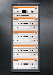 The Model 120S4G8 is a portable, self-contained, air-cooled, broadband, completely solid-state amplifier designed for applications where instantaneous bandwidth, high gain and linearity are required. The Model 120S4G8, when used with a sweep generator, will provide a minimum of 120 watts of RF power instantaneously from 4 to 8 GHz. The Model 120S4G8 is equipped with a Digital Control Panel (DCP) which provides both local and remote control of the amplifier. The DCP uses a graphic Liquid Crystal Display, menu assigned softkeys, a single rotary knob, and a dedicated power on/off switch to offer extensive control and status reporting capability. The display provides operational presentation of Forward Power and Reflected Power plus control status and reports of internal amplifier status. Special features include a gain control, internal/external automatic level control (ALC) with front panel control of the ALC threshold, pulse input capability and RF output level protection. Also included is an internal RF detector which provides an output for use in self-testing or operational modes. All amplifier control functions and status indications are available remotely in GPIB/IEEE-488 format, RS-232 hardwire and fiber optic, USB, and Ethernet. The buss interface connector is located on the back panel and positive control of local or remote operation is assured by a keylock on the front panel of the amplifier. The Model 120S4G8 is designed to have low spurious signals, linearity and is extremely load tolerant which enables it to be used in many RF applications such as: RF susceptibility testing, antenna/component testing, and communication technology testing. It can be used as a test instrument covering multiple frequency bands and is suitable for a variety of communication technologies such as CDMA, W-CDMA, TDMA, GSM, UWB, WiMAX etc. The 120S4G8 is part of AR抯 Expandable Power concept, which gives the amplifier much more versatility. The 120S4G8 consists of four 35S4G8A sub-amplifiers housed in a single equipment rack with a controller. The 120S4G8 can function as one amplifier or be separated and operate as four separate 35S4G8A amplifiers which can be used independently.