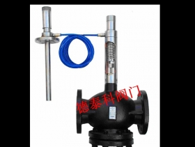 下面以加热用温度调节阀为例,结合工作原理示意图说明其工作过程:将 温度传感器插入被控介质中,当被控介质温度升高时,感温液体膨胀,作用力 克服弹簧阻力,推动阀芯向下移动,阀门趋于关闭,从而减少热媒介质流量; 反之,当被控介质温度低于设定值时,感温液体收缩,弹簧复位推动阀芯开启, 增加热媒介质流量,使被控介质温度趋于升高。循环往复,从而使被控介质温 度始终保持在设定温度值的允许范围内。