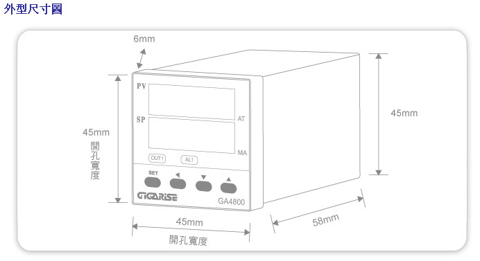 | 输出 | 继电器 : 10A/240 VAC (电阻性负载) |