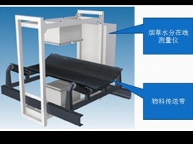 微波从微波发射源发射出来,透过物料后被微波接收器接收。根据微波功率的衰减和相位移的改变,即可计算物料中的水分含量。