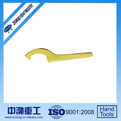 防爆勾扳手:又称月牙形扳手,俗称勾扳子,用于拧转厚度受限制的扁螺母等;专用于拆装车辆,机械设备上的圆螺母,卡槽分为长方形卡槽和圆形卡槽.制作工艺:使用优质合金钢经高温锻打而成,强度高,耐磨.适用圆螺母的外径范围.