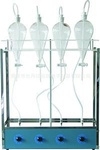 技术原理按照“GB/T16488-1996水质石油类和动植物油的测定红外光度法”来测定油类时,需要对水样进行萃取。将分液漏斗置于自动萃取器架上,水样和萃取溶剂都倒入漏斗中,由于萃取溶剂的比重比水大,在重力的作用下会固定漏斗底部的位置,但当气泵向漏斗底部吹气时,萃取溶剂就会翻腾向上与漏斗上方水样快速充分混合,气泵的气量可以自行调节,总萃取时间可以由时间继电器控制,萃取溶剂就可以充分将油类物质从水中萃取出来。应用领域用于地表水、地下水、生活污水、工业废水中油类测定前的萃取,还可用于其它液液萃取。技术参数:技术指标和有关参数1.萃取水样体积:50mL~1000mL2.萃取溶剂体积:25mL~50mL3.萃取效率:95%以上4.重复性:RSD﹤5%5.萃取时间:5-10min/样品(萃取时间可调)6.功耗:60VA