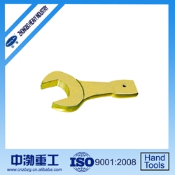 防爆敲击呆扳手是最普通的呆扳手样式,产品尾部是敲击端,一端有固定尺寸的开口 ,用以拧转一定尺寸的螺母或螺栓。适用于石油、化工、冶金、发电、炼油、造船、石化等行业。是设备安装、装置及设备检修、维修工作中的必需工具。