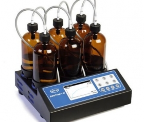 生化需氧量(BOD)指水中的有机物被微生物生化降解时所消耗的氧气量,是反映水中有机污染物含量的一个综合指标,主要用于监测地表水体中有机物的污染状况,测定污水和废水的有机物污染负荷,用来评价污水和废水的可生化性。BODTrak II 生化需氧量分析仪采用压差法测量原理,模拟自然界有机物的生物降解过程,测试瓶上方空气中的氧气不断补充水中消耗的溶解氧,有机物降解过程中产生的 CO2 被密封盖中的氢氧化钾吸收,压力传感器随时监测采样测试瓶中氧气压力的变化。在生化需氧量 BOD(即对应于测试瓶中消耗的氧气量)与气体压力之间建立相关性,从而精确地进行 BOD 测量,测试结果在屏幕上以图形显示,BOD 值将以mg/L 为单位直接显示仪器屏幕上。