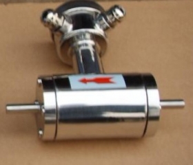 采用电磁感应原理测量介质流体流速的电磁流量计 。它在管道的两侧加一个磁场,被测介质流过管道就切割磁力线,在两个检测电极上产生感应电势,其大小正比于流体的运动速度。可以用于测量酸、碱、盐溶液、水煤浆、矿浆、砂浆灰泥、纸浆、树脂、橡胶乳、合成纤维浆和感光乳胶等各种悬浮物、气化汽和粘性物质的流量。电磁流量计密封性能好,还可用于自来水和地下水道系统。而且测量过程不与流体接触,适于制药、生物化学和食品工业。这种流量计还可检测血液流量。它的量程比约为100:1,精度一般为0.5%,由于这种传感器必须保持管道内电阻和测量电路阻抗之间有一定比例关系,因此在制造上有一定困难。当被测介质的电导率约为10欧姆·厘米时就开始产生困难,电导率更低时就产生原理性困难。当电导率为10欧姆·厘米时,就达到导电介质和电介质之间的“分界线”,热噪声电平随内阻的增大而显著增加。