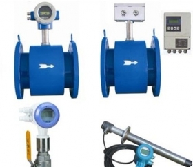 采用电磁感应原理测量介质流体流速的电磁流量计 。它在管道的两侧加一个磁场,被测介质流过管道就切割磁力线,在两个检测电极上产生感应电势,其大小正比于流体的运动速度。可以用于测量酸、碱、盐溶液、水煤浆、矿浆、砂浆灰泥、纸浆、树脂、橡胶乳、合成纤维浆和感光乳胶等各种悬浮物、气化汽和粘性物质的流量。电磁流量计密封性能好,还可用于自来水和地下水道系统。而且测量过程不与流体接触,适于制药、生物化学和食品工业。这种流量计还可检测血液流量。它的量程比约为100:1,精度一般为0.5%,由于这种传感器必须保持管道内电阻和测量电路阻抗之间有一定比例关系,因此在制造上有一定困难。当被测介质的电导率约为10欧姆·厘米时就开始产生困难,电导率更低时就产生原理性困难。当电导率为10欧姆·厘米时,就达到导电介质和电介质之间的“分界线”,热噪声电平随内阻的增大而显著增加。