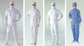 防静电衣服用不同色的防静电布制成。布料纱线含一定比例的导电纱,导电纱又是由一定比例的不锈钢纤维或其它导电纤维与普通纤维混纺而成。通过导电纤维的电晕放电和泄漏作用消除服装上的静电。由于不锈钢纤维属金属类纤维,所以,由它织成的防静电布料的导电性能稳定,不随服装的洗涤次数而变化。