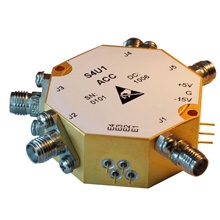 The S4 series of single pole, four throw PIN diode switches span the frequency range of 10MHz to 18GHz and are available with absorptive or reflective inputs. The switches are available in a wide variety of standard frequency ranges from cost-effective narrowband to high-performance broadband. Each switch incorporates a TTL-compatible driver for convenient system integration and operates from +5V and -12V to -18V DC power supplies. All switches incorporate DC blocks at the RF ports. Standard screened switches incorporate epoxy sealed lids and undergo a stringent yet cost effective screening cycle. The switches are also available with hermetic seal and high-rel screening for military and aerospace applications.