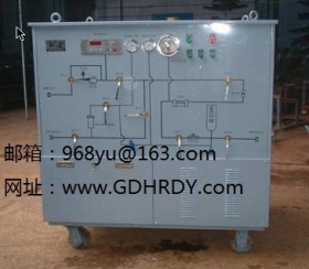 SF6气体回收装置的工作原理是用于主机将设备气室内的SF6气体抽出并压缩至临界压力,使其成为液体后存入贮罐中贮存。在开关室需要时,将贮罐中的气体回充到设备室内。其中还含有干燥系统、净化系统,保证回收的SF6气体中的含水量、含油量及杂质达到国家标准。同时还含有抽真空系统,保证设备中尽量不混入空气和杂质。可用于别的气体使用。