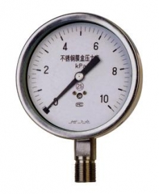 不锈钢膜盒压力表使用环境条件:-25~55℃,相对湿度不大于80% 。 抗工作环境振动:V.H.3级