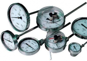 双金属温度计是基于绕制成环性弯曲状的双金属片组成。一端受热膨胀时,带动指针旋转,工作仪表便显示出所应的温度值。