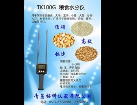 TK100G粮食水分仪是我公司引进国外先进技术在国内首次推出的高性能、数字化水分测量仪器。仪器采用电阻原理,数字显示,传感器与主体合为一体,设有多个档位用来测量大米、玉米、小麦、大麦、大豆等的水分。该仪器测量水分范围宽、精度高、显示清晰、测量迅速、性能稳定、指标可靠,而且体积小、重量轻,可随身携带在现场快速检测,使用简单方便。是食品、农业等行业检测其产品水分的理想仪器。