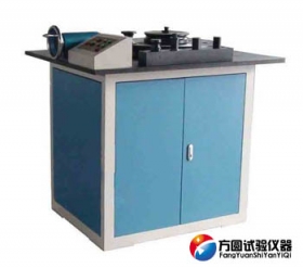 试验机由机架、工作台、工作盘、减速机、压紧装置、电气控制箱、安全防护和弯曲附件等构成,具有结构紧凑、操作简单、